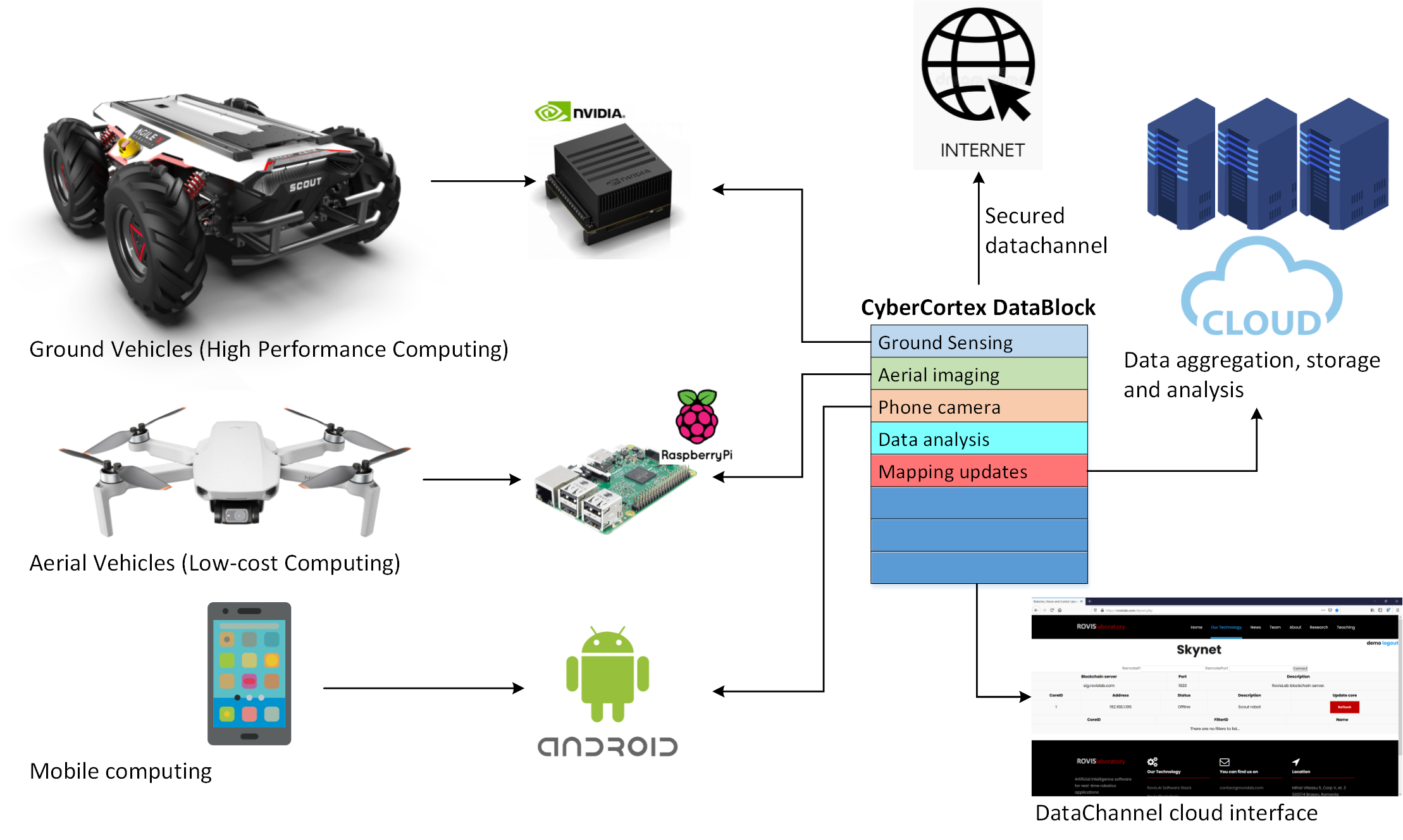 Based on CyberCortex.AI, we are able to provide tailored solutions for various robotics applications, ranging from autonomous driving and logistics to applications targering embedded systems, such as computer vision on the edge, robotics in agriculture, or monitoring maintainance.